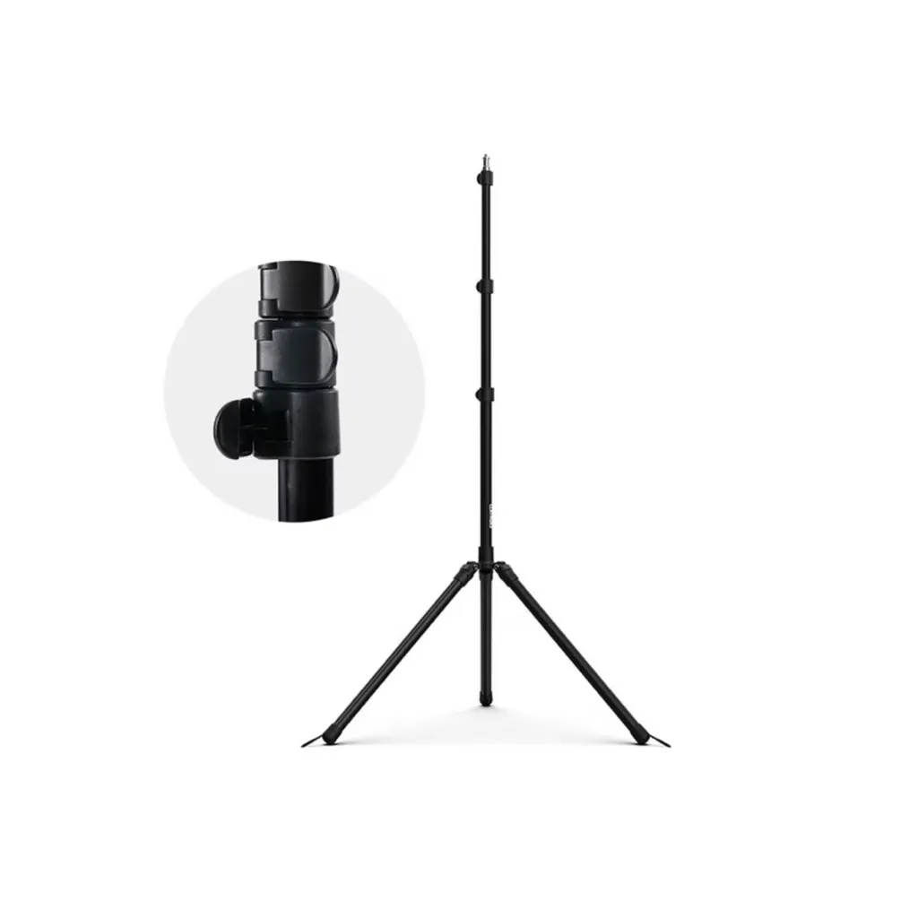 When folded, the Quick Tripod is a compact 50cm tall and offers 4 height adjustments, from 52cm to 200cm. The 3-level leg angle can be adjusted via a push-button, allowing for flexible use at the desired height and angle.