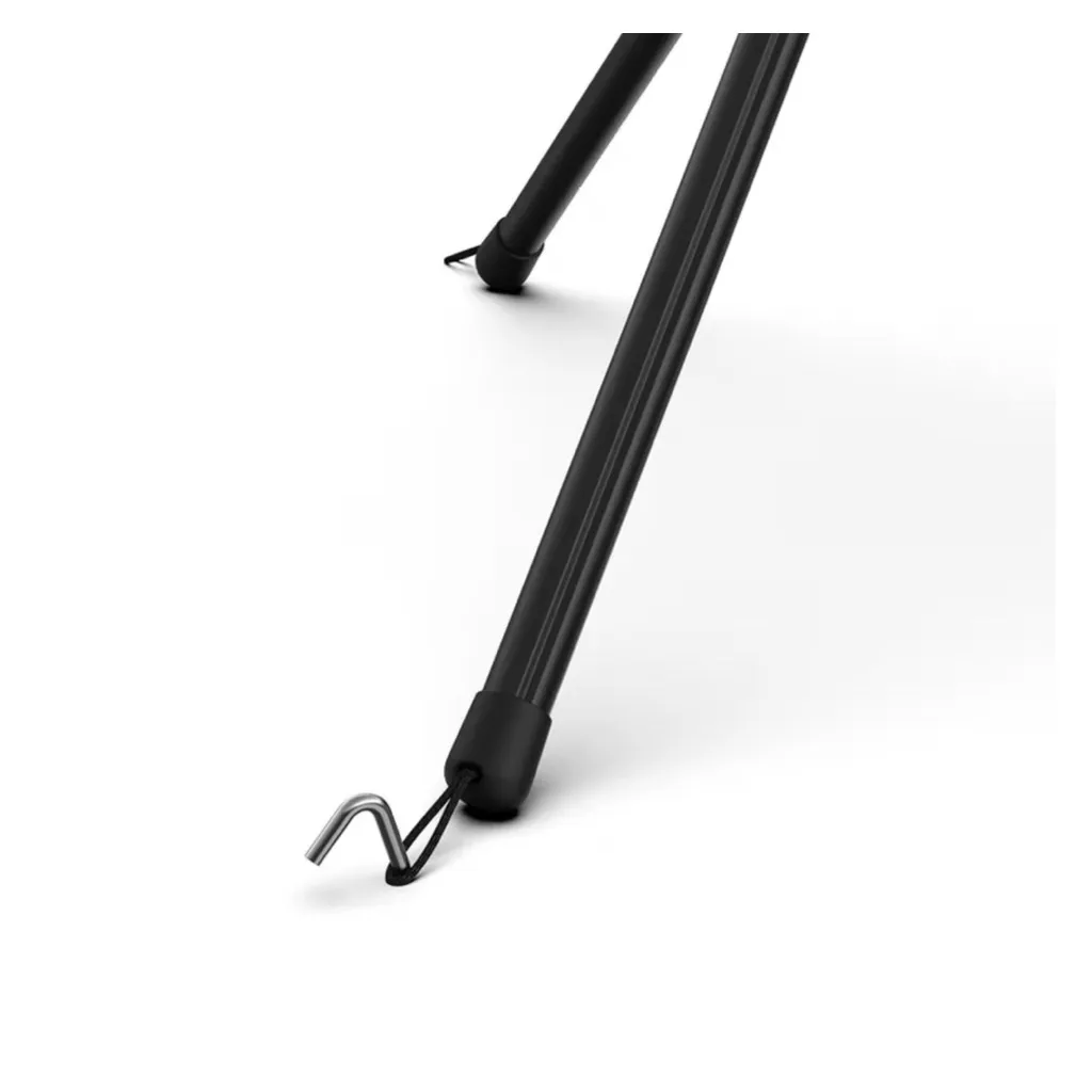 It’s lighter (750 grams) and has a higher load capacity (4 kilograms). It’s quick to set up and store with a one-touch flip locking system and features three ground anchors for stable support.